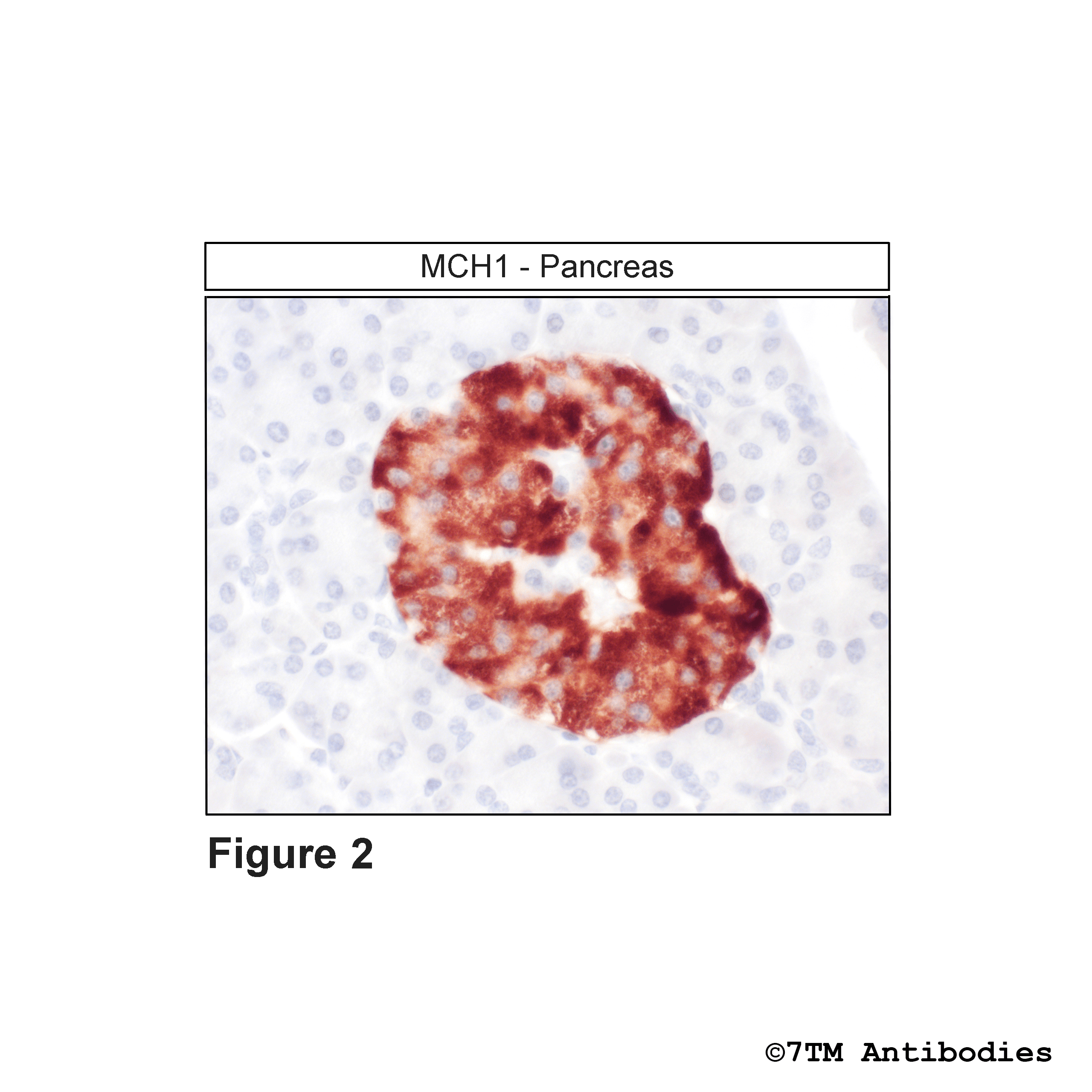 The non-phospho MCH1 receptor antibody is directed against the distal end of the carboxyl-terminal tail human MCH1 receptor. It can be used to detect total MCH1 receptors in Western blots independent of phosphorylation. It can also be used to isolate and enrich MCH1 receptors from tissue lysates. It also detects MCH1 in cultured cells and tissue sections by immunohistochemistry.