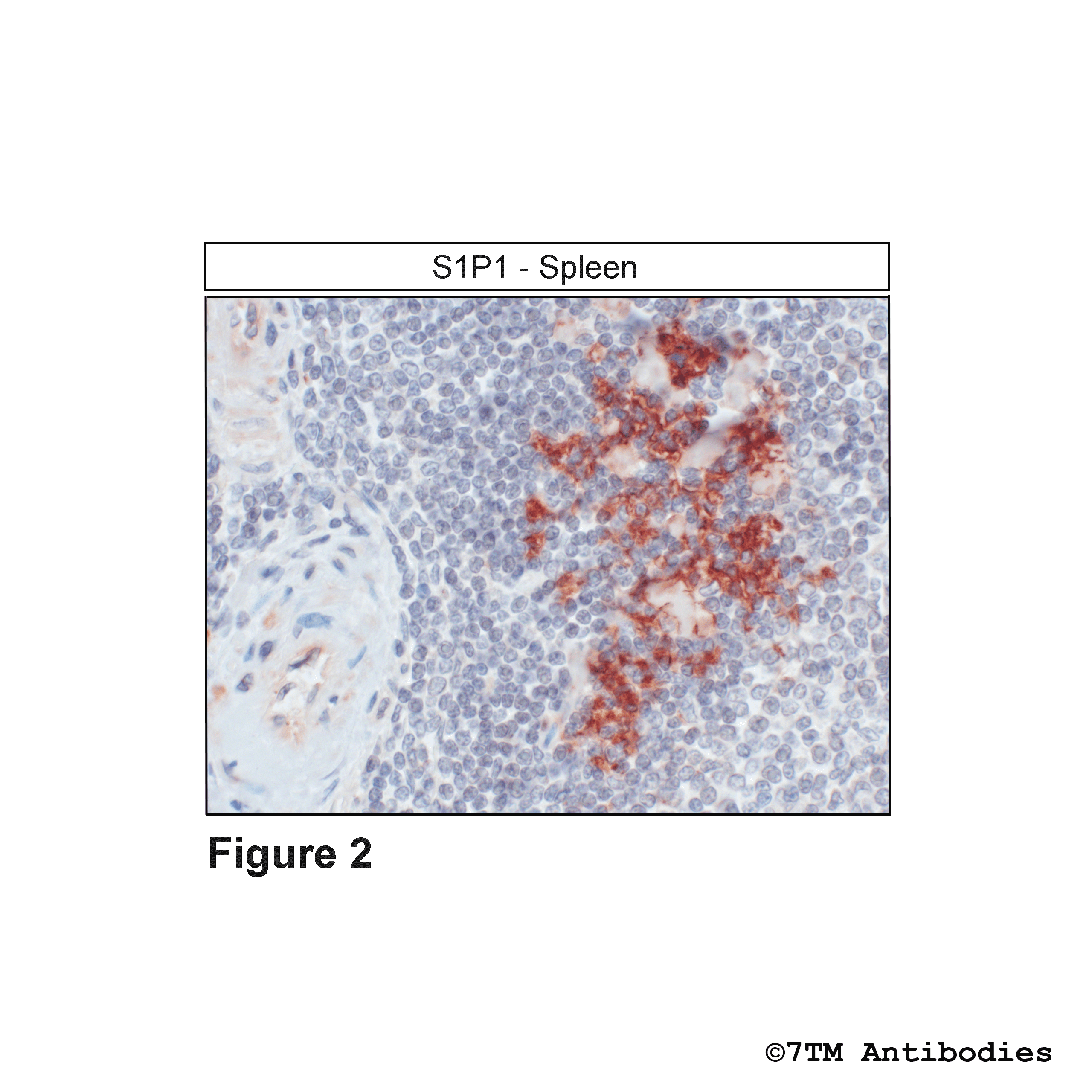 The non-phospho-S1P1 receptor antibody is directed against the distal end of the carboxyl-terminal tail of human S1P1. It also detects S1P1 in cultured cells and tissue sections by immunohistochemistry. It can be used to detect total S1P1 receptors in Western blots independent of phosphorylation. The S1P1 antibody can also be used to isolate and enrich S1P1 receptors from tissue lysates.